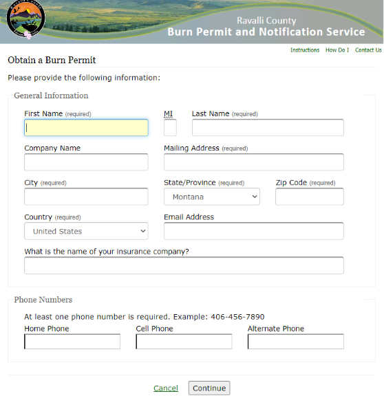 At the beginning of a season please RENEW Burn Permit from last year. This updates your contact information.